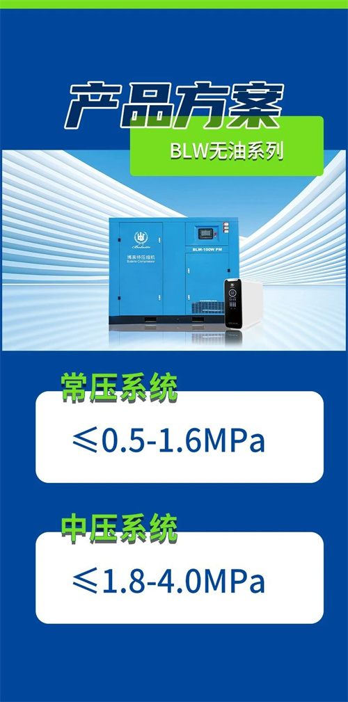 精密儀器氣源供應:激光檢測儀、顆粒計數器等設備需無油壓縮空氣(ISO 8573-1 Class 0級)。壓縮空氣需干燥潔凈氣源,避免油蒸氣干擾傳感器精度。氣動工具動力源:驅動氣動扳手、噴槍等維修工具,無油設計可延長工具壽命并防止污染精密部件。近年來,博萊特積極與高校、特檢院及第三方檢測機構展開深度合作,提供專業化、定制化的空壓機解決方案。通過技術創新與場景適配,滿足這些專業用戶的高要求。未來,博萊特將持續深化產學研合作,以智能化、綠色化的空壓解決方案賦能檢測行業高質量發展。